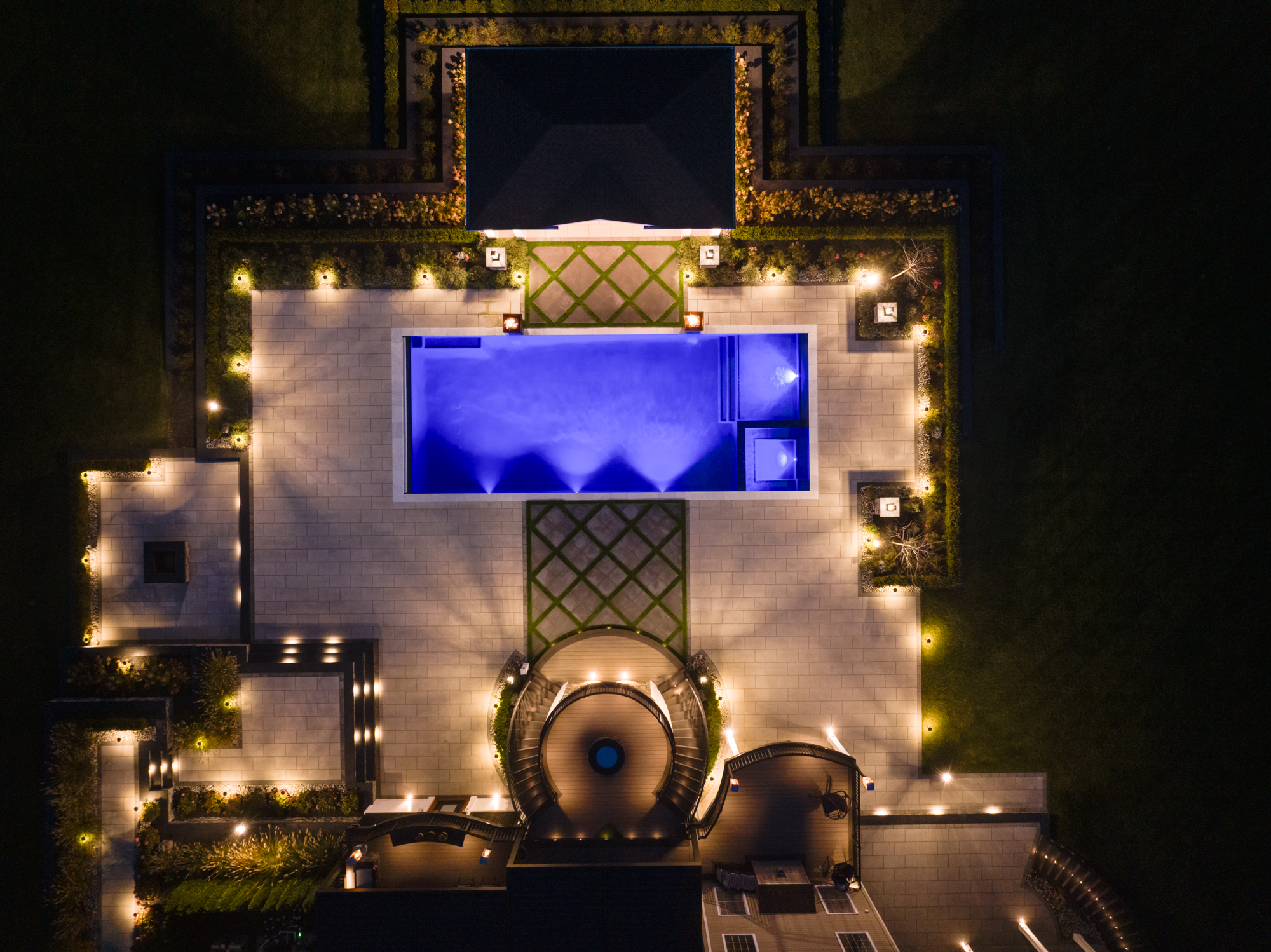 At night, the entire backyard comes alive. Integrated lighting traces the architecture from top to bottom, giving the project the same presence after dark as it has during the day. It’s a full lifestyle experience, built to handle anything from quiet evenings to full-blown celebrations — and it’s no surprise this one took top honors.