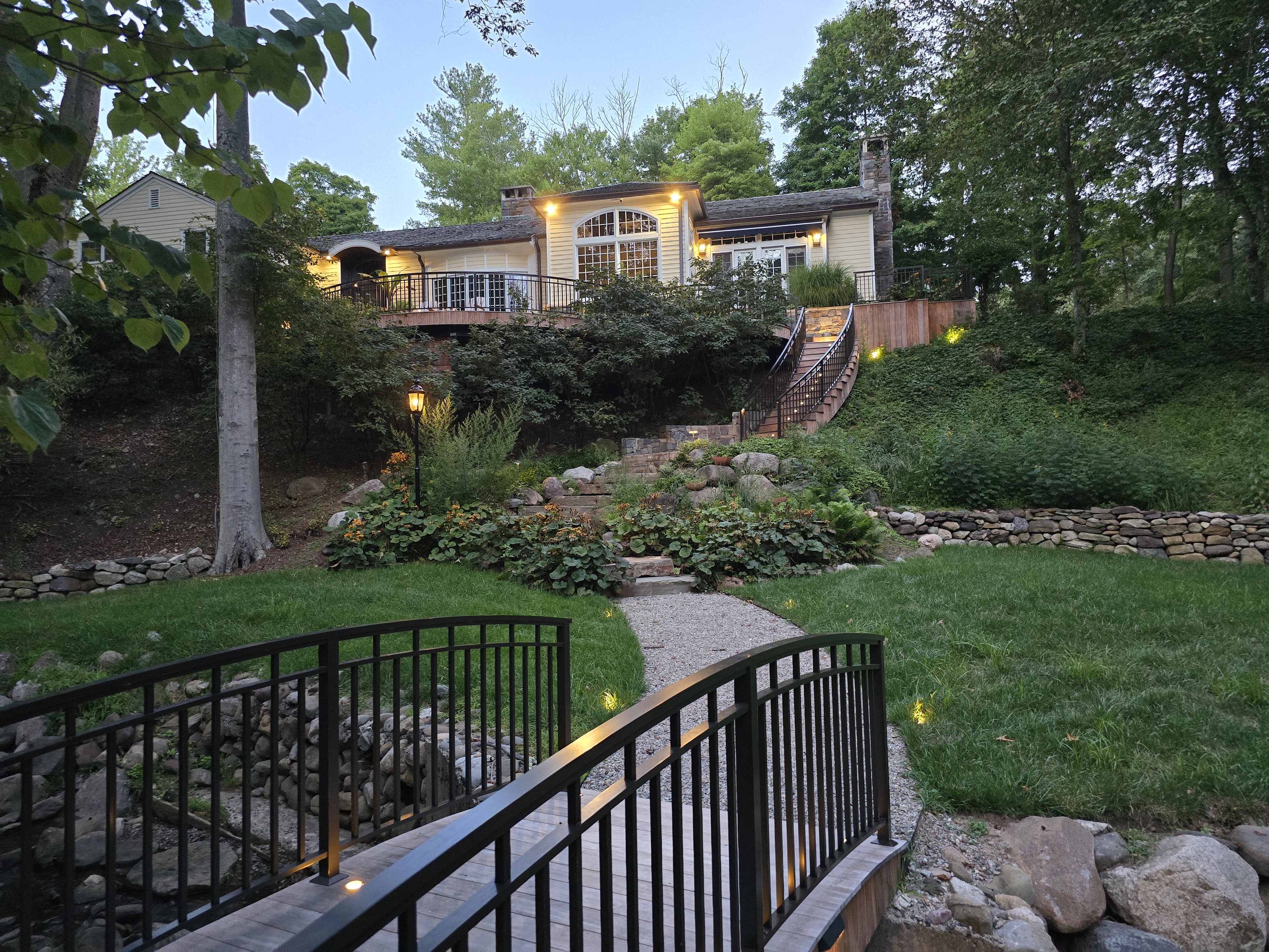 From the sunken fire feature that keeps the view unobstructed, to the arched footbridge tucked into the woods below, this build is full of quiet details that reveal themselves slowly. It’s not about flash — it’s about fit, and this one fits exactly where it belongs.